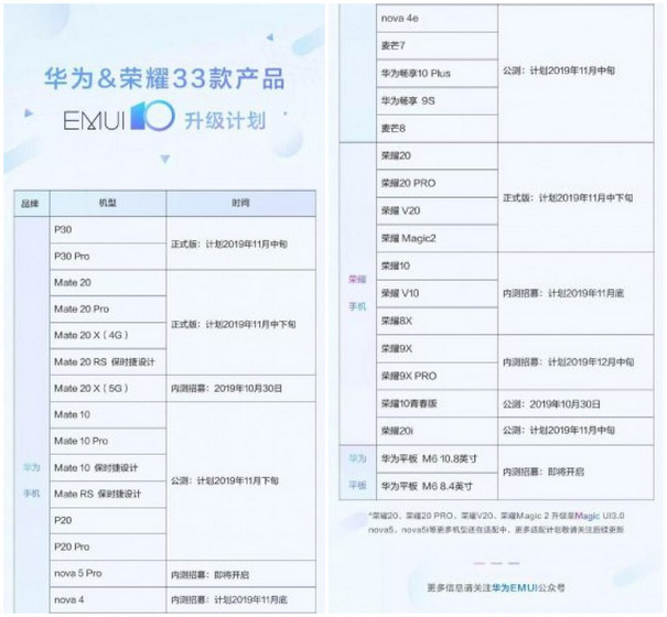 同时,从去年开始的 P20 系列也将在本月获得 EMUI 10 。