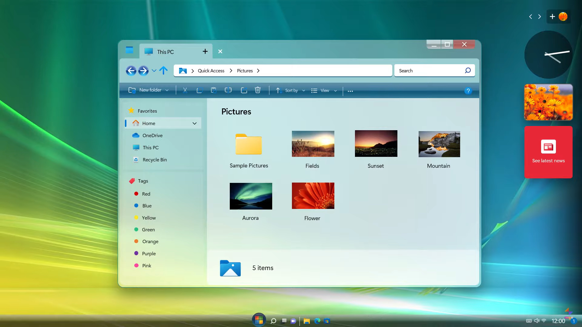 除了精致的视觉感受,这组概念设计在功能改进上也有自己的想法。例如可在桌面显示的更大尺寸的小部件、对文件资源管理器和标签页的设计优化等。围观视频(油管)
