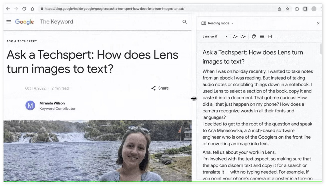 Google announced at BETT (British Educational Technology and Training Show) that it will launch a reading mode for Chrome browser and ChromeOS. This feature is designed specifically for students and people with language learning difficulties such as reading disabilities. Users can access the reader view in the side panel of Chrome, as shown in the picture above, which removes elements on the screen that hinder reading, such as images and videos. It also allows customization of font, font size, spacing or background color.