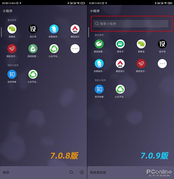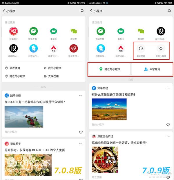 同样变化的还有 “发现” 页面下方的小程序面板,新版沿袭了旧版设计,但对中间几个常用链接做了调整。
