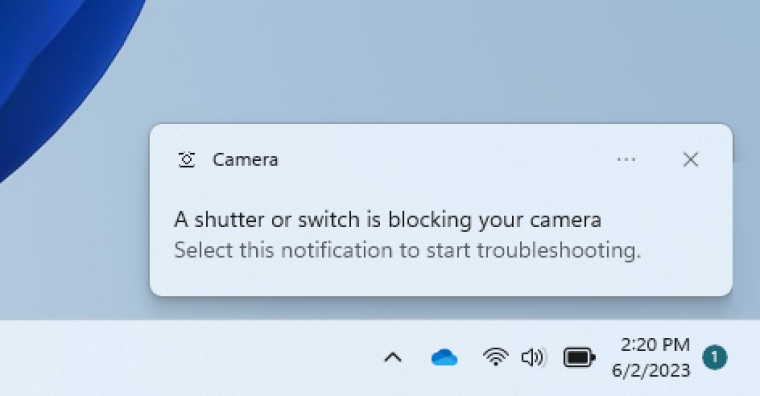 如果检测到摄像头流媒体问题,例如摄像头无法启动或摄像头快门关闭,则会出现一个弹出对话框,其中建议启动自动 “获取帮助” 疑难解答程序以解决该问题。