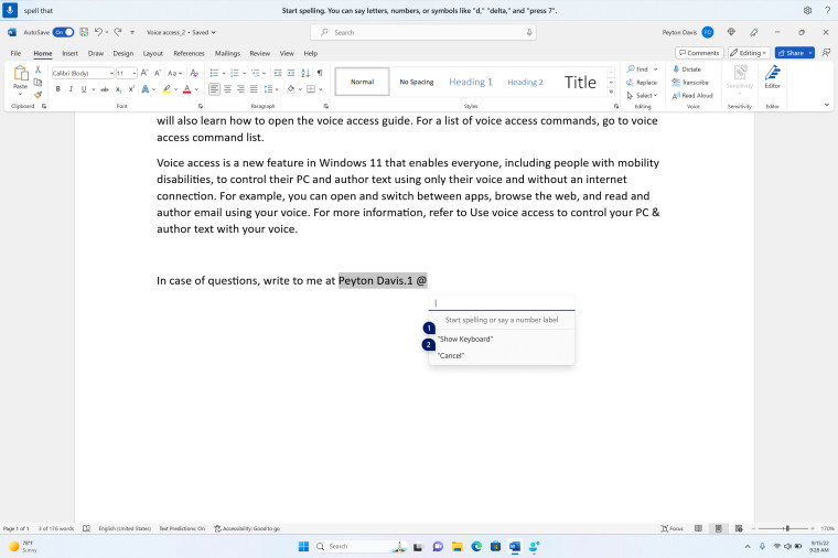 反馈:请在反馈中心 (WIN + F) 的辅助功能 > 语音访问下提交反馈。