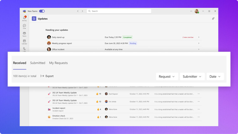 Teams Updates is a sub-application in Microsoft’s collaboration application Teams. It allows employees to send reports to employers about their work progress, such as daily updates and event descriptions. Recently, Teams Updates has added a new feature of data export, which now allows users to export all updates submitted to an Excel spreadsheet for further analysis and data sharing.