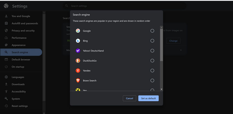 Chrome is introducing a user-friendly new option for users in the European Union and European Economic Area. Desktop Chrome users in these regions will be allowed to choose their preferred default search engine when launching the browser. Users can select one from several alternative search engines, and clicking the “Set as default” button will make it their default search engine. Google has previously provided a similar prompt on the Android platform. The available search engines include Google Search, Bing, DuckDuckGo, Brave Search, Yep, and Qwant, among others. Google states that Chrome is launching this feature to comply with local regulations.