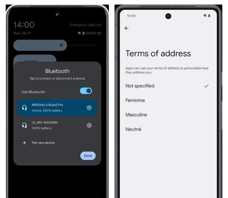 According to Android Police, Android 14 will receive a pop-up menu that will allow users to switch the active connection of Bluetooth devices. It includes all available Bluetooth devices, and users can choose which connection is the active one for audio input and output. In addition, the website discovered more hidden features in the Beta version of Android 14 for Pixel phones in the next quarter. For example, if notifications keep coming in, there will be a way to limit notifications from applications; the landscape notification panel will also have a better layout with multiple columns after upgrading; users who use languages with specific gender words (such as French) can choose how applications should address them: male, female, or neutral terms in settings.