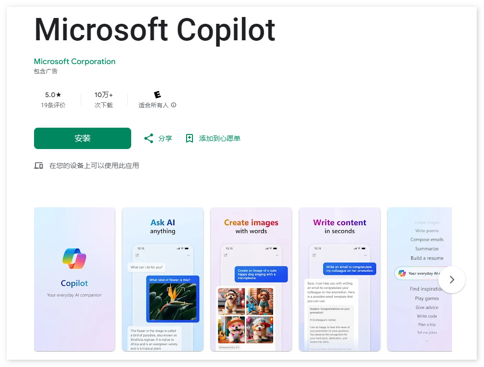 软餐获悉,微软最近低调地面向 Android 操作系统发布了其人工智能助理 Copilot 的应用程序。该应用已上架到 Google Play 商店(链接)。据悉该应用已获得了暗黑模式、 DALL-E 3 AI 作图、文档撰写、历史聊天查询等功能。微软描述道:“使用 Copilot 提高您的工作效率 – 您的 AI 驱动的聊天助手 Copilot 是 Microsoft 的开创性聊天助手,由最新的 OpenAI 模型 GPT-4 和 DALL·E 3. 这些先进的人工智能技术提供快速、复杂和精确的响应,以及从简单的文本描述中创建令人惊叹的视觉效果的能力。在一个地方聊天和创作 – 免费!” 本文发出时,该应用下载已超过 10 万次。