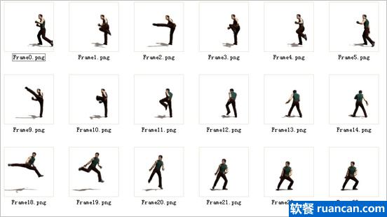 软件看上去有点丑,不过确实很好用。软餐在网上随手找到一张武术高手耍帅的 GIF 动画图片,使用这款小软件瞬间就分解了。看看我提取出来的单张图片效果。