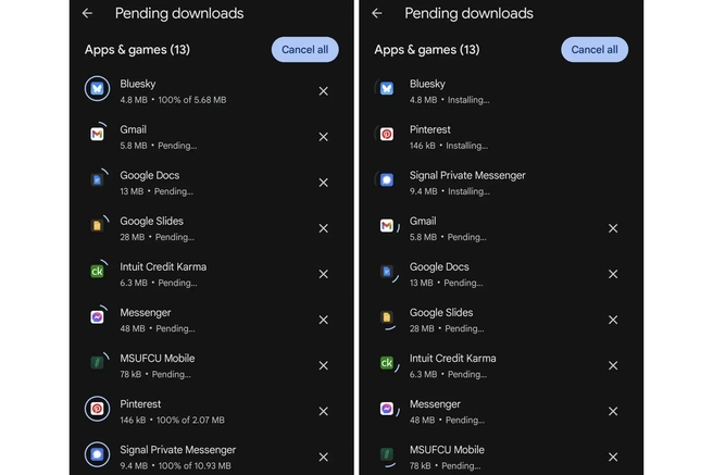 Google Play 应用商店现在最多可同时执行三个应用更新。此前每次只能更新一个应用。 Google 尚未对这一变化发表任何公开声明。今年 4 月份,Google Play 商店首次能够同时安装最多两个应用。苹果公司多年来一直允许 iPhone 用户同时下载三个 App Store 应用。