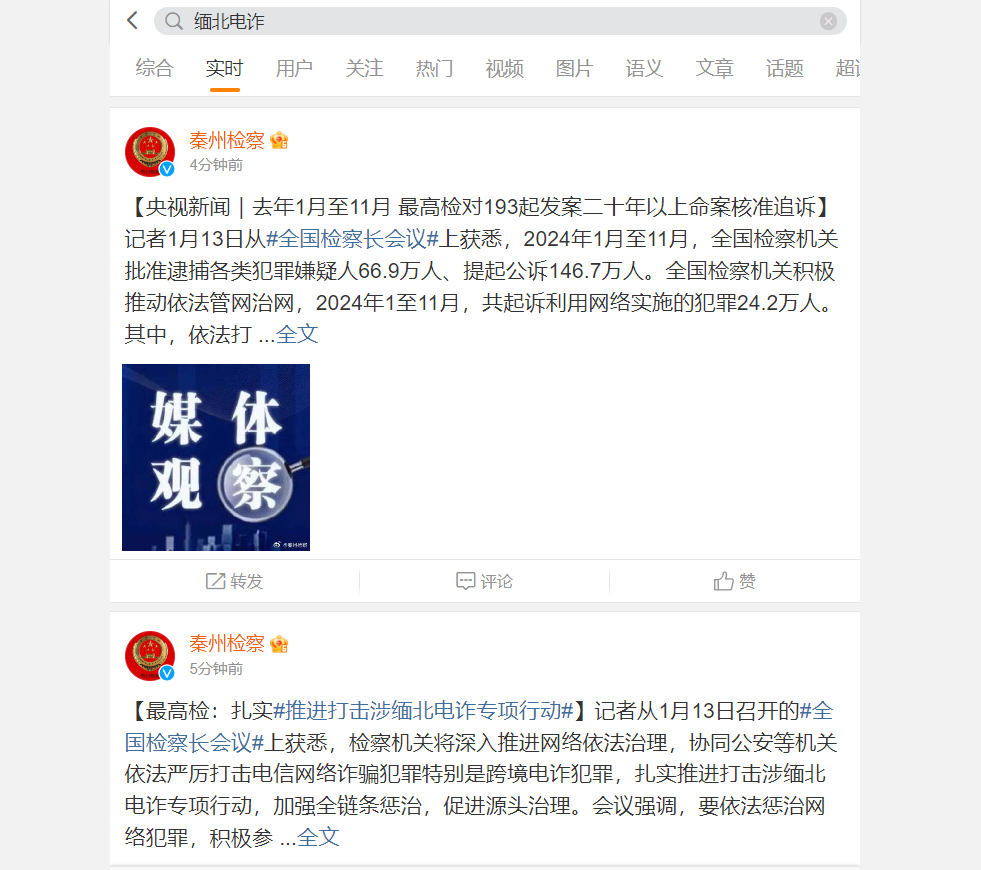 「缅北电诈」在微博成敏感词:搜索结果被官媒帖子占领 无忌 • 2025-01-14 21:56 • 业界 本文不是新闻报道。 软餐实测发现,在微博搜索 “缅北电诈” 等关键词,搜索结果已被官方媒体(以及官方机构或极少数特定用户)的帖子 “占领” 。这事实上意味着该关键词在微博已成为 “敏感词” 。也意味着无法通过该关键词查找一般微博用户发布的相关内容。 将搜索结果替换为 “官媒帖子” 是微博多年来沿用的一种言论控制手段——当遇到 “敏感事件”(尽管人们经常不清楚因何 “敏感”)时,该社交媒体经常采取这种手段屏蔽一般用户的发言。 本站电报频道 / 电报群 赞 (0) 无忌 0 0 生成海报 发表回复 您的邮箱地址不会被公开。 必填项已用 * 标注*昵称: *邮箱: 网址: 记住昵称、邮箱和网址,下次评论免输入 提交