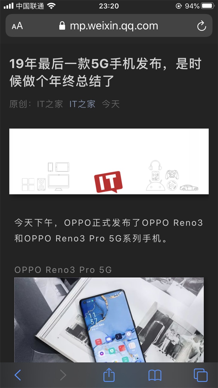 现在 IT 之家发现,虽然 iOS 版微信还未支持黑暗模式,不过现在苹果 Safari 浏览器已经能够很好地支持在黑暗模式下浏览微信公众号的文章了,对于喜欢使用 Safari 浏览器阅读微信公众号文章的用户来说,也是个不错的好消息了。