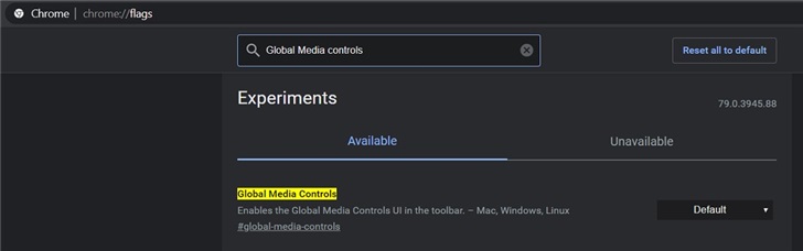 - 转到 chrome://flags 菜单,然后搜索 “Global media controls” 。