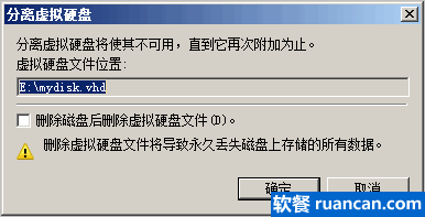 上面是初级的隐藏,如果希望提高保密的等级,我们可以把虚拟硬盘彻底分离,还是右键,选择 “分离 VHD”,之后这个虚拟硬盘在磁盘管理界面中也消失了。你还可以对刚才保存的 vhd 文件重新命名,保存到电脑中不起眼的位置。这进一步提高了虚拟硬盘的保密系数。
