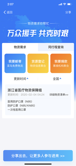 支付宝表示,近日该平台上线了防疫物资信息服务平台,通过搜索同行程查询功能即可看到。有别于其他物资信息平台,该平台利用蚂蚁区块链技术,由浙江省卫建委、经信厅主导,将对物资的需求、供给、运输等环节信息进行审核并上链存证。同时,支付宝还向疫情相关小程序开发者提供区块链算力永久免费、专项资金支持。