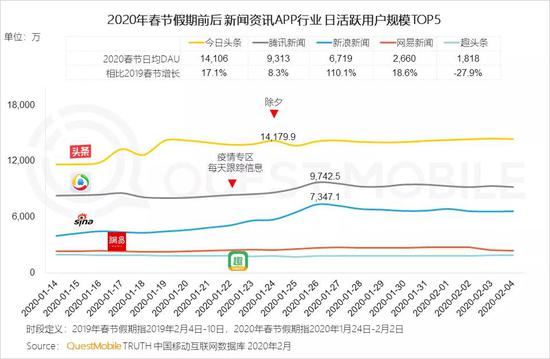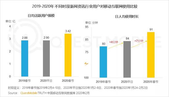 2.1 通过手机获取实时疫情和防护消息,新闻资讯行业的用户规模在春节期间增幅达到 17.2%,用户使用时长也达到新高