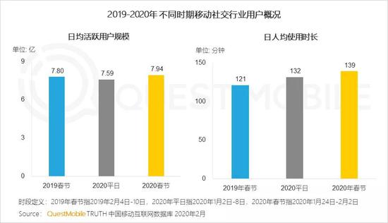 1.1 网民对移动社交依赖加强,更频繁地通过社交 App 拜年、关怀亲友、获取信息等,时长比上年增加了 15%