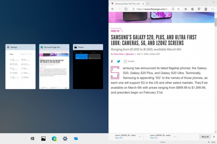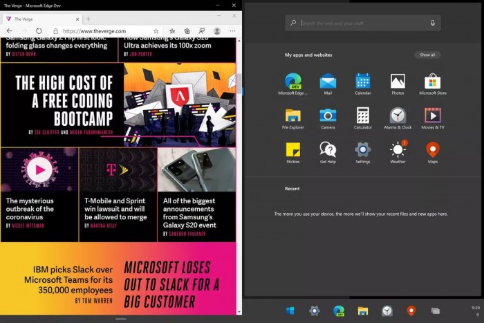 除了全新的开始菜单之外,Windows 10X 的使用体验和当前 Windows 10 非常显示。在视觉上可以选择 Dark 和 Light 两种模式,但是 Windows 10X 中对 UX 的最大更改就是应用的多任务处理方式了。