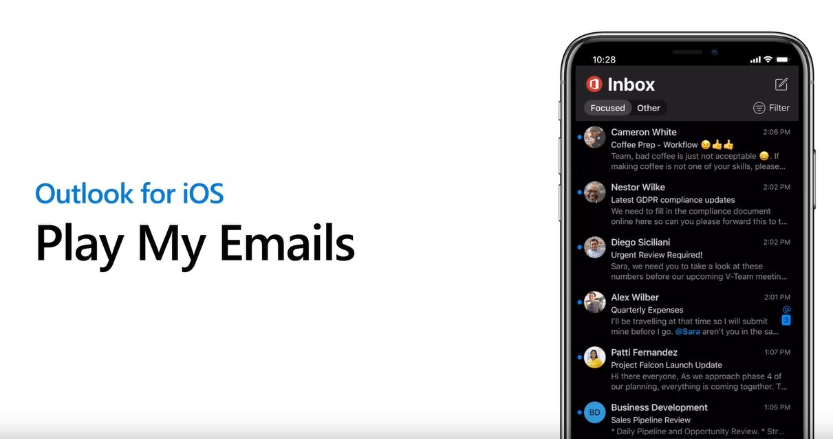 在 Ignite 2019 上,微软宣布了 Outlook Mobile 的一项全新功能,称为 Play My Emails 。此功能将以微软称之为 “自然” 的声音读出 Outlook 应用程序中收到的电子邮件。该功能采用了 Cortana 自然语音功能相关技术。当您上下班,执行多任务处理或任何时候忙于做其他事情时,可以要求 Cortana 从电子邮件中朗读文本。