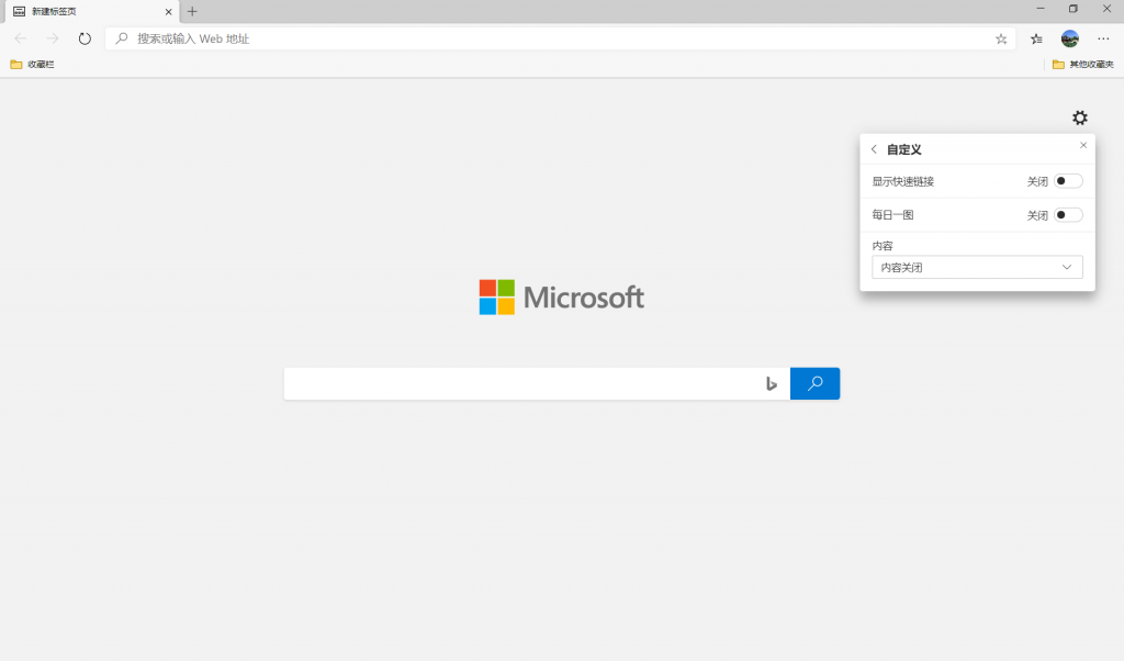 要将 “新标签页” 限制为仅显示 “搜索” 框和 Microsoft 品牌,您可以按照以下步骤操作: