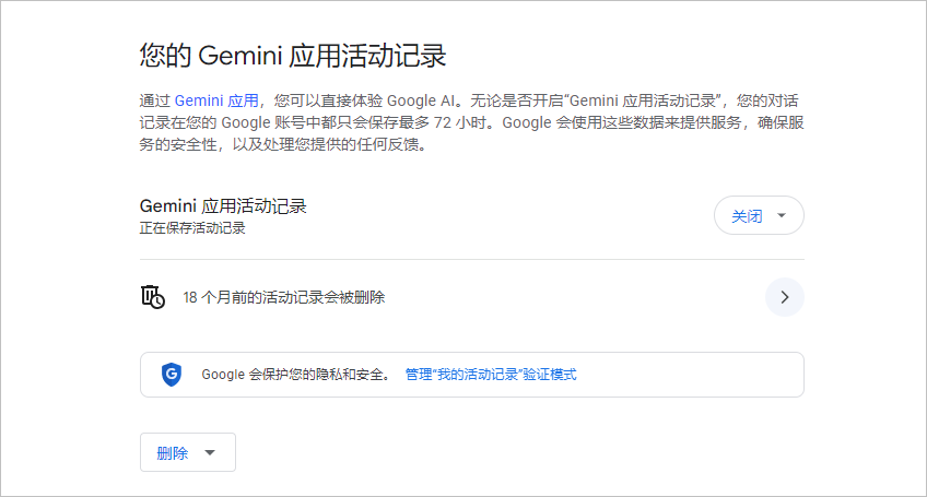 为了改进 Google AI,我们会对部分保存的对话进行人工审核。如果你不想让我们对将来的对话进行人工审核,请关闭 Gemini 应用活动记录。当这项设置处于开启状态时,请勿输入你不希望我们审核或使用的信息。