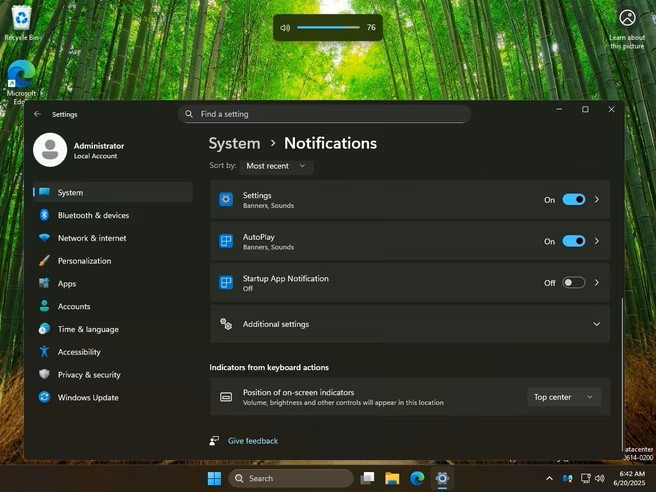 Windows 11 将允许修改系统指示器的显示位置 志锋 • 2025-06-22 17:29 • Windows 11 X 用户 Phantomofearth 分享的截图显示,Windows 11 似乎将允许用户调整音量、屏幕亮度等系统指示器的显示位置。用户可选择让这些指示器出现在屏幕底部中央、顶部中央或左上角区域。该选项菜单隐藏于 Windows 11 测试版的设置界面中,尚不清楚具体的测试版本号。微软尚未在近期 Windows 11 测试版的更新说明中提及此功能。 本站电报频道 / 电报群 赞 (0) 志锋 0 0 生成海报 发表回复 您的邮箱地址不会被公开。 必填项已用 * 标注*昵称: *邮箱: 网址: 记住昵称、邮箱和网址,下次评论免输入 提交