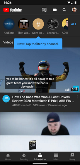 另一个新功能是频道过滤器。据报道,该功能可以过滤并让您轻松访问自己喜欢的创作者发布的新视频,而无需访问频道的专用目标网页。