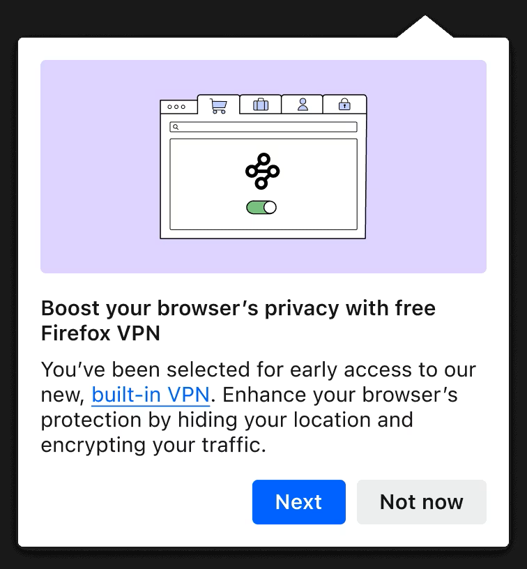 Mozilla 火狐浏览器将内置免费 VPN 连接服务。 Mozilla 正在对该功能进行测试。部分用户可抢先体验 VPN 功能。用户需登录账户才能使用 VPN 服务,目前仅支持美国节点。 Mozilla 承诺为实现此功能所收集的用户数据将极为有限。该服务独立于该公司的系统级 VPN 付费服务 Mozilla VPN 。 Firefox VPN 与 Mozilla VPN 存在多处差异。 Mozilla VPN 作为付费服务,不仅能重定向浏览器流量,还能处理其他所有网络流量,而 Firefox VPN 仅作用于浏览器内部。多款浏览器已配备内置 VPN 功能,包括 Microsoft Edge 和 Opera 。 Mozilla 尚未明确火狐 VPN 功能的正式发布时间。