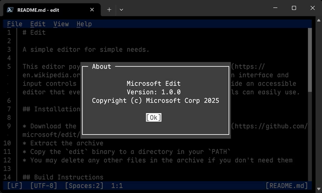 这使得 Edit 与 Nano 、 vim 等命令行编辑器功能相近。微软此前虽在标准 Windows 应用中内置过类似编辑器,但传统 MS-DOS Edit 工具仅支持 32 位系统。新版工具体积不足 250KB 。该工具既支持快捷键操作,也兼容鼠标手势,可同时绑定多个文件编辑、实现文本查找替换功能,并具备自动换行支持。