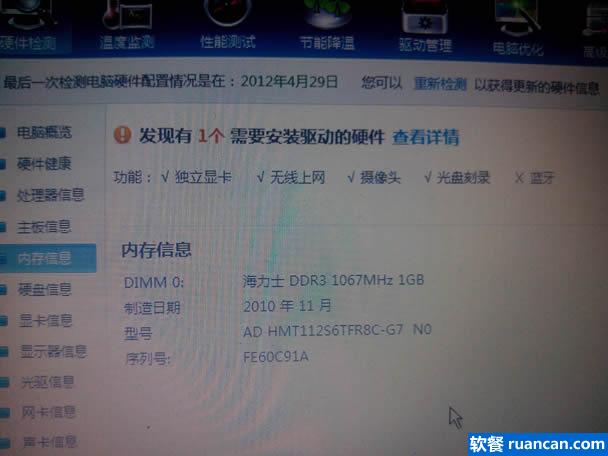 为了提高系统的运行速度,我们决定对一台笔记本的内存进行升级。首先对当前的内存设备进行检测,这里我使用了 360 安全卫士自带的鲁大师(360 安全卫士 – 功能大全 – 鲁大师)进行检测,下面是这台笔记本内存配置信息。这里可以看到这是一条海力士 DDR3 内存,仅有 1GB,这么低的配置已经难以应付各种运行需求,亟待升级。