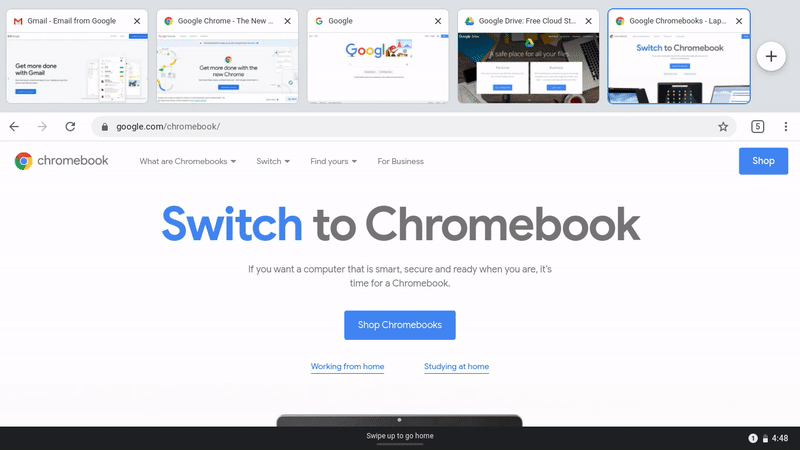 要打开 Quick shelf(Chrome OS 任务栏的替代品),请从屏幕底部向上轻扫一下: