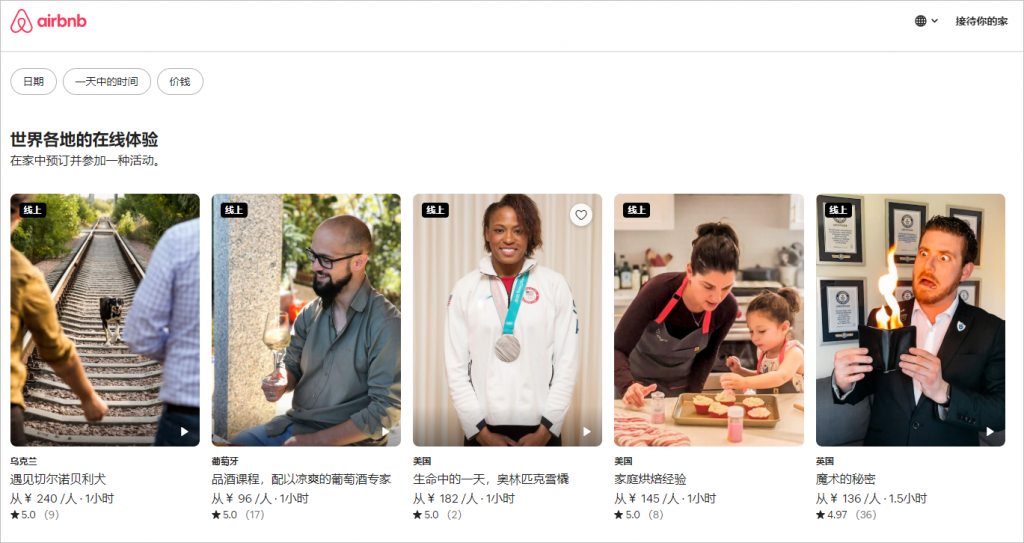 民宿短租预订平台 Airbnb 最近推出了一项 “在线体验” 计划,这项计划将为客人提供协同式在线虚拟旅游服务,并帮助房东在新冠危机中度过难关。