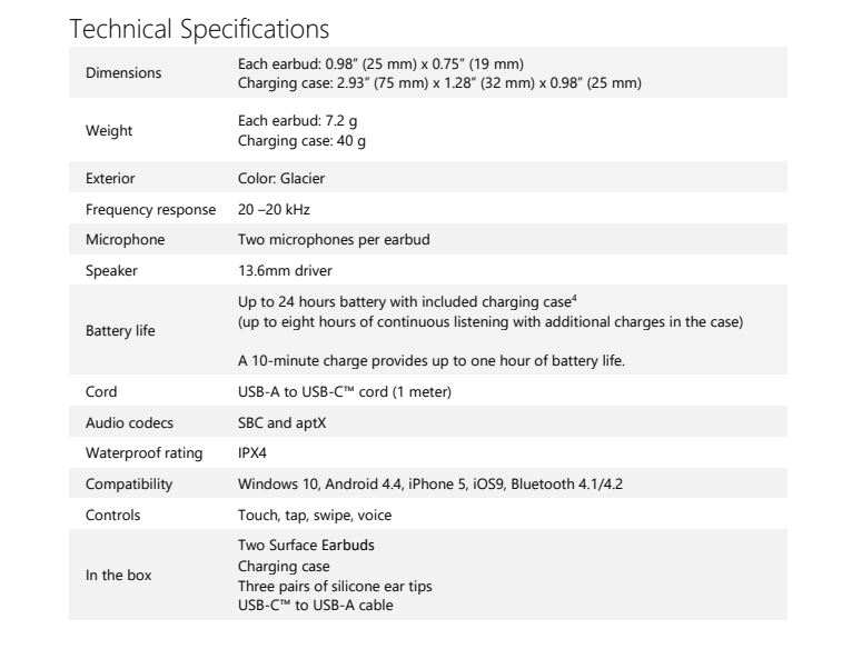 Surface Earbuds 是真正的无线耳塞,可与任何蓝牙设备配合使用,并带有双麦克风阵列和 24 小时的电池寿命。它还支持 Siri 和 Google Assistant 等数字助理。响应式触摸表面可实现直观的手势,如轻击、触摸和滑动。