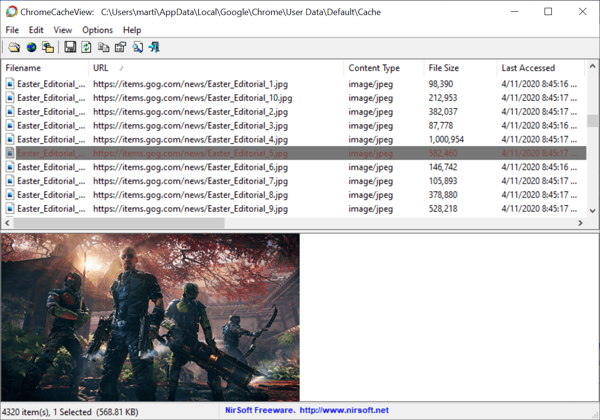 ChromeCacheView 是 Nirsoft 出品的一款便捷软件,可在 Windows 系统上浏览任何基于 Chromium 的浏览器的缓存文件。