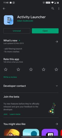5. 在某些小米设备上,“ 壁纸” 应用不显示 “打开” 按钮,这使用户更难以访问超级壁纸。在这种情况下,您将需要安装 Activity Launcher(Play 商店| 软餐的百度网盘, 提取码: 2jhv)来触发 Wallpapers 应用程序。