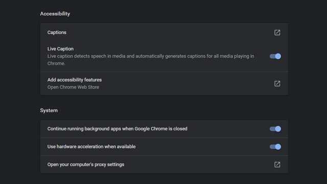 - 在 Chrome 浏览器中转到设置-> 可访问性-> 实时字幕(chrome://settings/accessibility),然后启用实时字幕切换(Live Caption)。