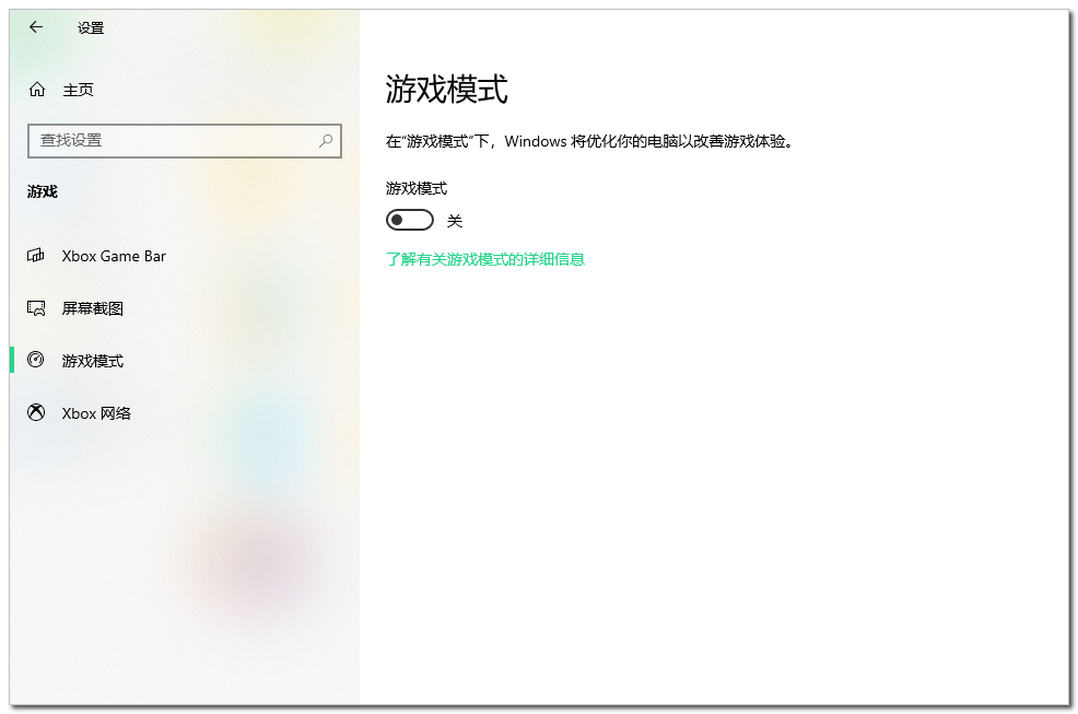 如果软餐读者遭遇相关问题,可以尝试关闭 Windows 10 的 “游戏模式” 。路径为 “设置 – 游戏 – 游戏模式”,将其关闭即可。