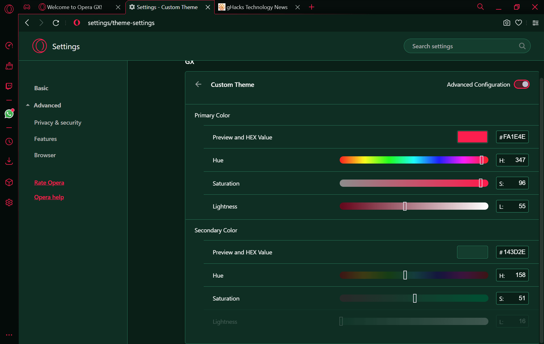 浏览器的新版本已经作为浏览器内更新提供,并且可以从 Opera GX 网站上独立下载。