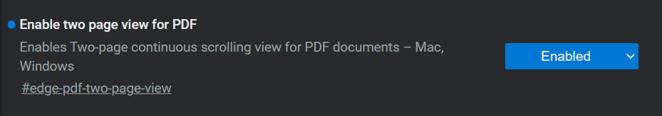 用户可以通过在 Chrome://flags 中切换 “为 PDF 启用两页视图”(Enable two page view for PDF)标记来激活该功能。