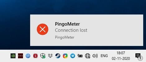 PingoMeter 可在系统托盘上显示 ping 的结果。运行它时,会出现一个托盘图标。 PingoMeter 在开始 ping 过程时会显示一些点状图形。当 ping 成功后,您会注意到图标中出现一条线,这是代表 ping 值的图形。它每隔几秒钟更新一次,形成类似心跳的曲线。