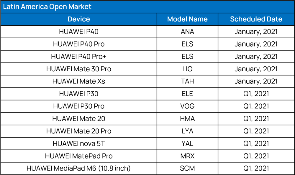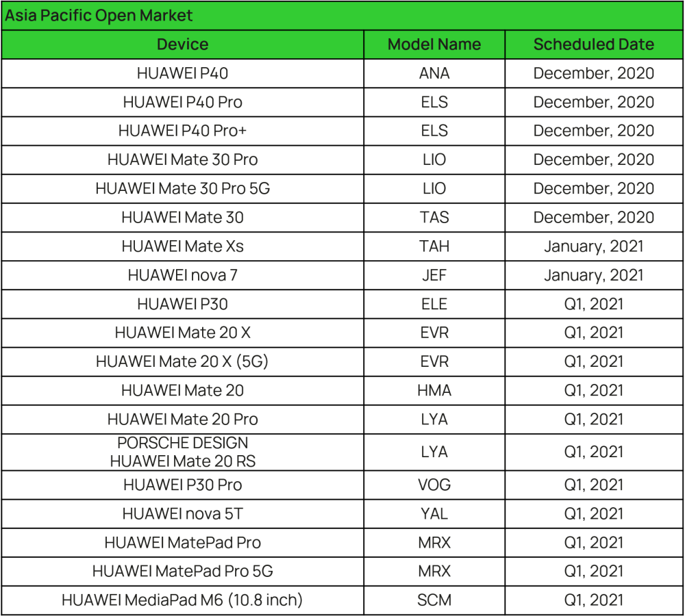 - 华为 Mate 30 Pro(LIO)– 2020 年 12 月