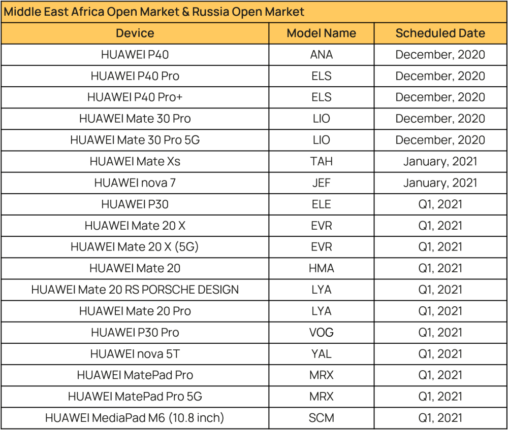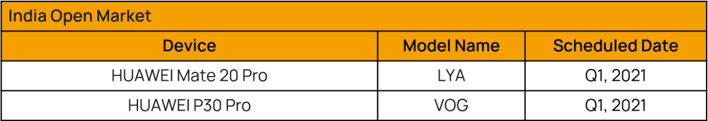 - 华为 Mate 20(HMA)– 2021 年 第一季度