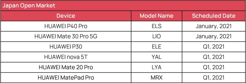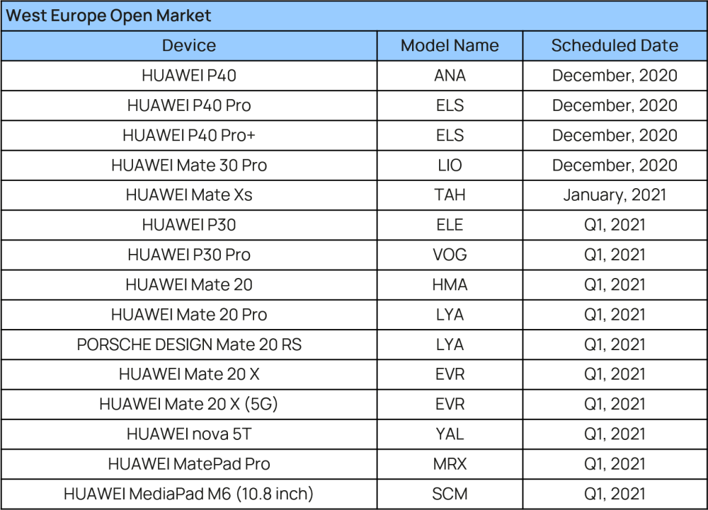 - 华为 P40 Pro +(ELS)– 2020 年 12 月