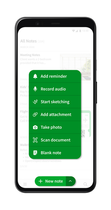 使用新的便笺按钮,您可以快速创建空白便笺,或者从各种便笺类型中进行选择(例如扫描文档,录制音频,添加附件等等),以便立即开始使用。