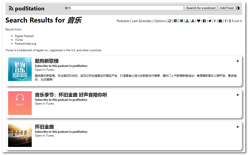 通过 Podstation 提供的播客搜索功能,你可以轻松找到自己喜爱的播客节目,如果你不知道听些什么,该功能非常有用。 Podstation 从三个来源获取相关结果:Digital Podcast,iTunes 或 Podcastindex.org 。