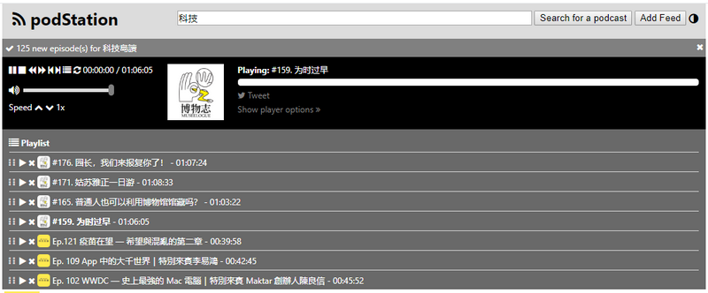 • 使用 Podstation 开始播放后,就可以关闭 Podstation 的选项卡,节目将继续在后台播放。