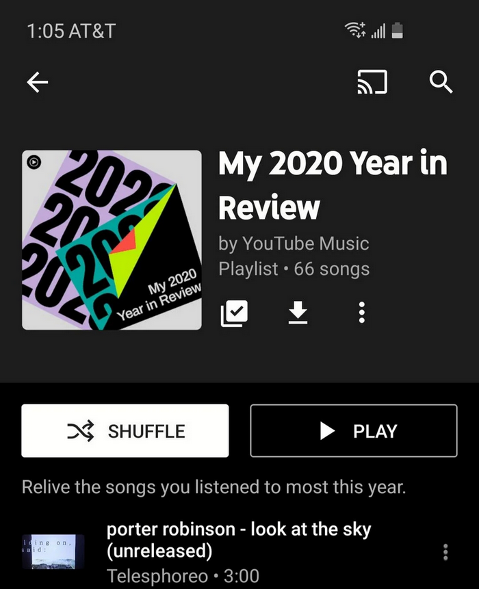 软餐(ruancan.com)发现,对于不同的用户,列表中的歌曲数量似乎在 80 到 100 之间变化。 YouTube Music 还允许你下载 “年度回顾” 播放列表以进行离线播放。