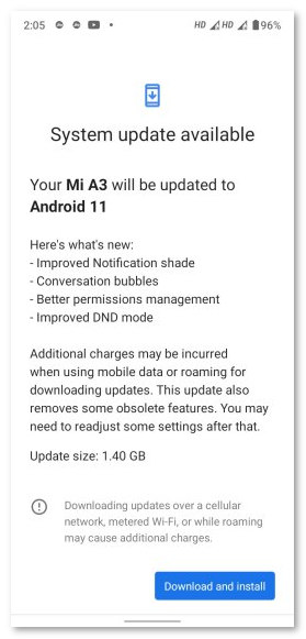此前小米官方并没有对这次更新进行过预告,因此小米 A3 对于接收到 Android 11 更新感到惊讶。