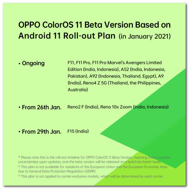 从 1 月 26 日开始,印度的 Oppo Reno 2F 、印度和印度尼西亚的 Oppo Reno 10x Zoom 将开始迎来 ColorOS 11 beta 版更新。