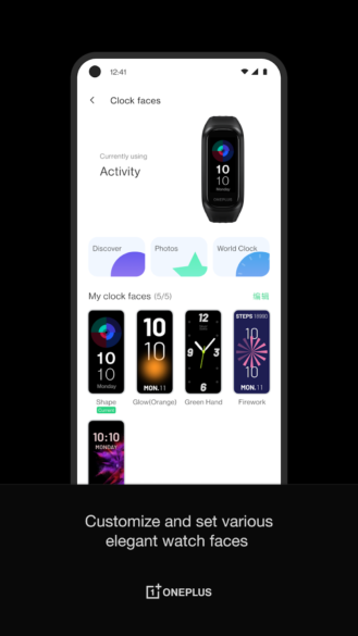 “一加健康”应用程序展示了非常典型的健身功能,例如运动轨迹、活动跟踪、表盘定制和常规的设备管理等。