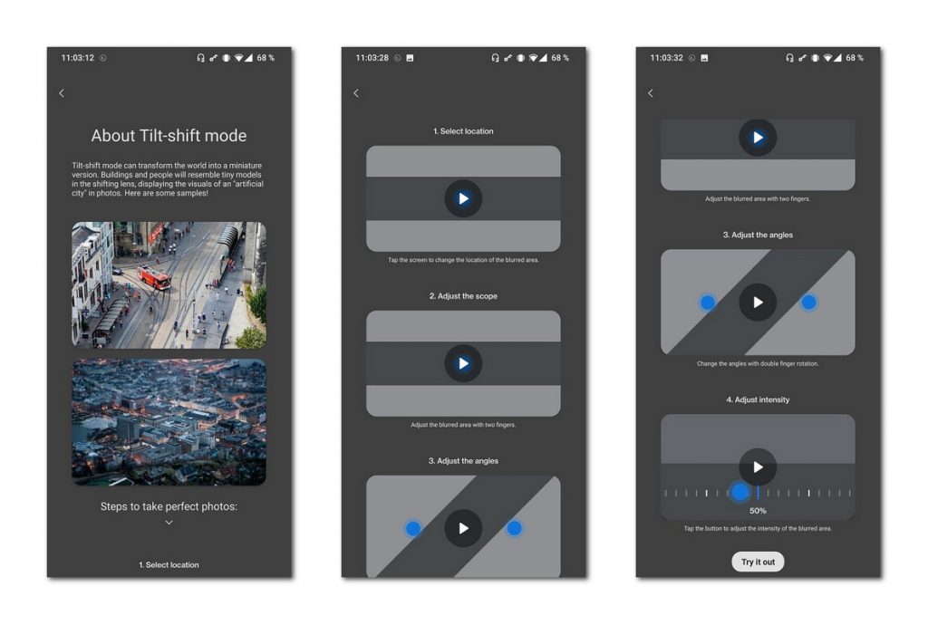 一加相机应用将支持 “倾斜移位” 模式,“倾斜移位” 是一种非常独特的摄影模式,它可使现实中的物体或位置看起来像一个微缩模型。一般用户需要从高处拍摄照片,例如可拍摄桥梁、楼宇、塔架或车辆等。它会营造一种视觉上的错觉,让我们感觉正在观摩一个微缩版模型。