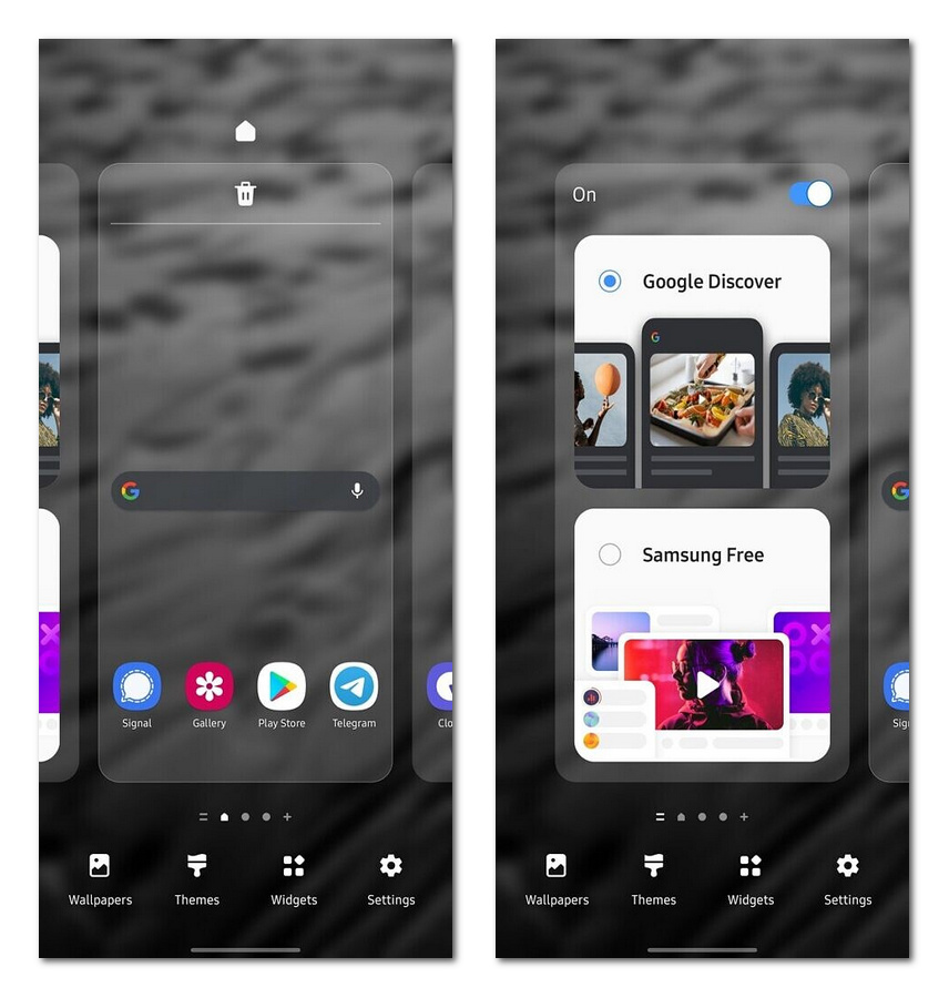 默认情况下,One UI 3.1 的原生桌面在手机的负一屏上显示 Samsung Free(三星自家的内容服务),但用户可对其自定义,改为在负一屏上显示 Google Discover 的供稿。